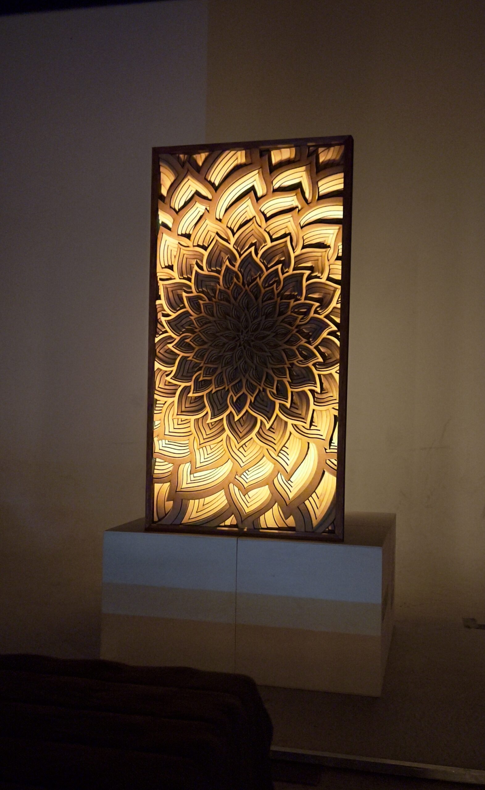 De vorm van het masker verandert naar mate er meer mensen bijdragen en zal anders zijn op basis van de mensen die er aan toevoegen. De toevoegingen activeren sensoren die licht en warmte activeren in de tempel.